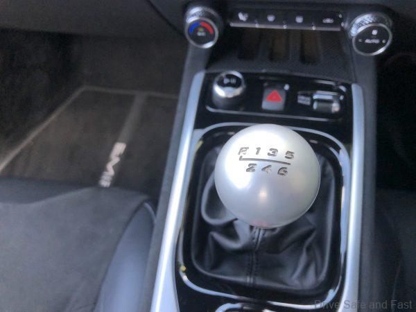 The 6-speed manual gearbox comes with a visible gear-change mechanism (on the side) and there is hydraulic power-assisted steering.