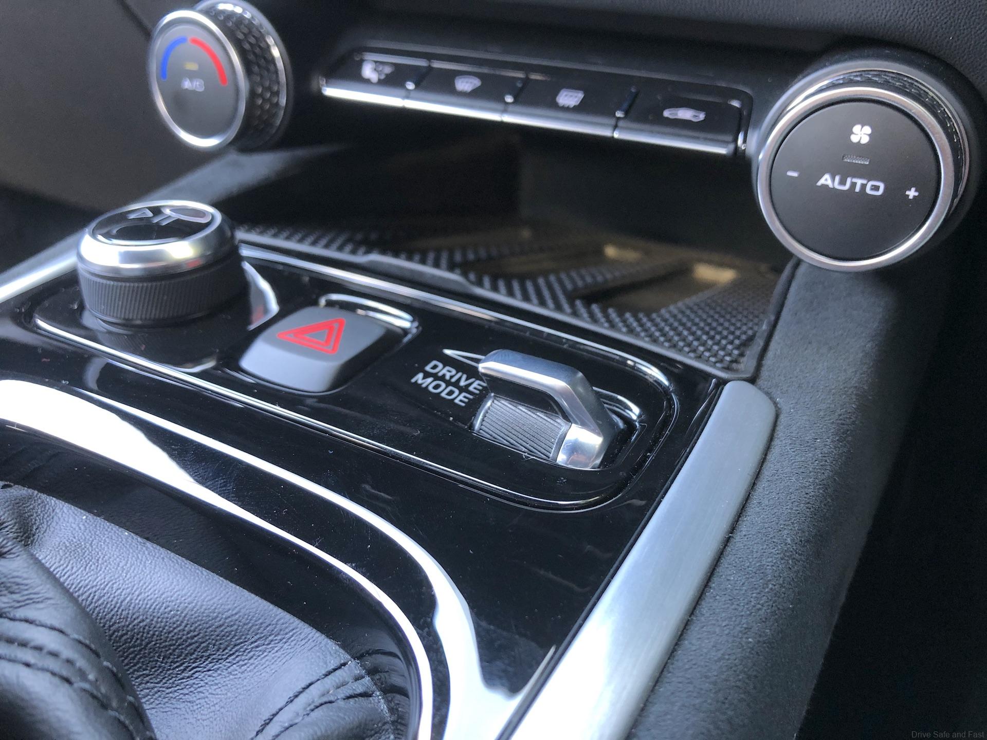 The Emira comes equipped with well sculptured seats that feature 12-way adjustability and two memory pre-sets linked to the door mirrors (driver’s seat only). Climate control, cruise control, keyless fighter plane inspired ignition and 3 selectable drive modes. ‘Tour’ for city driving, ‘Sport’ for motoring media (like us) to abuse and ‘Track’ for drivers who know what they are doing as stability control is reduced a fair bit.