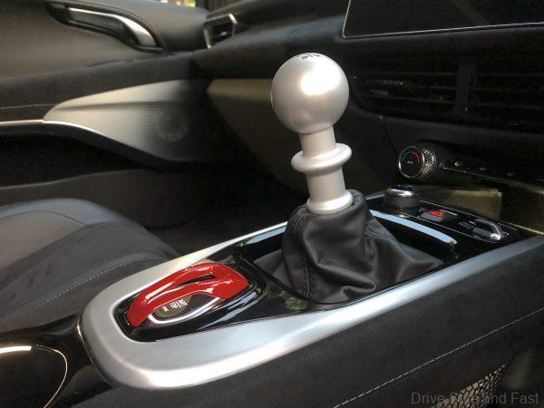 The 6-speed manual gearbox comes with a visible gear-change mechanism (on the side) and there is hydraulic power-assisted steering.