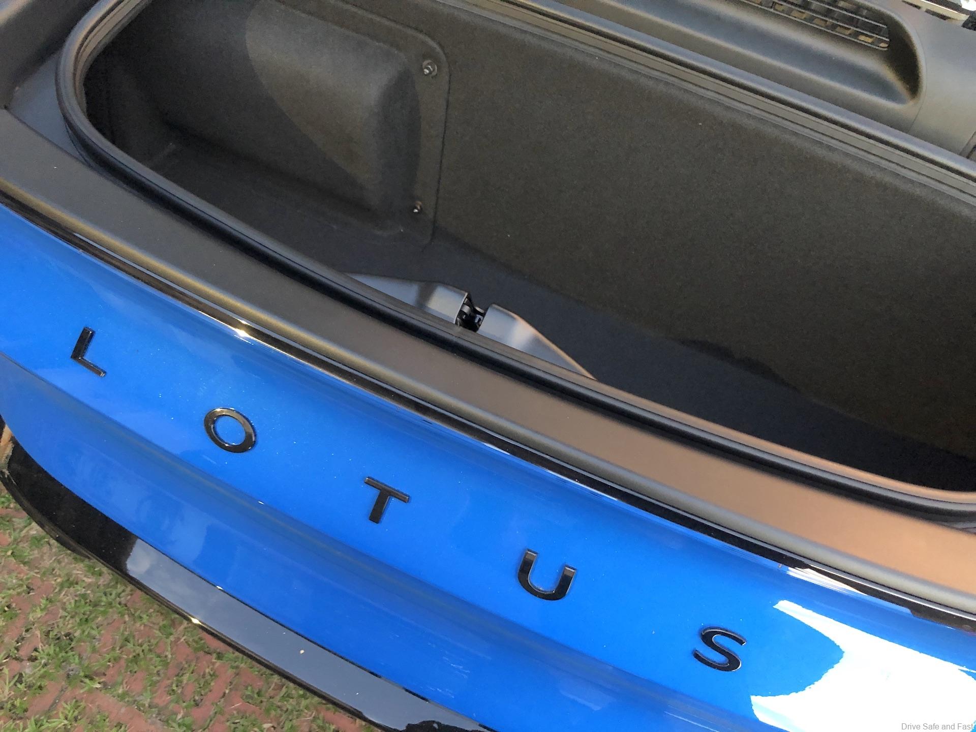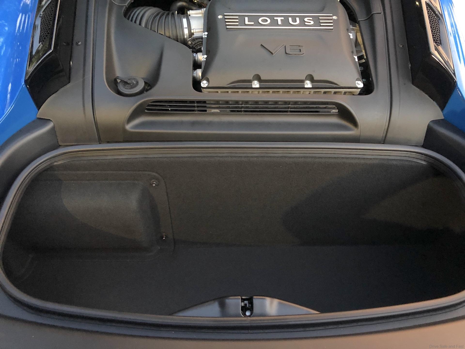 Under the rear cover is a Lotus tuned 3.5-litre supercharged V6 engine (from Toyota) and it is mid-mounted behind the two seats.