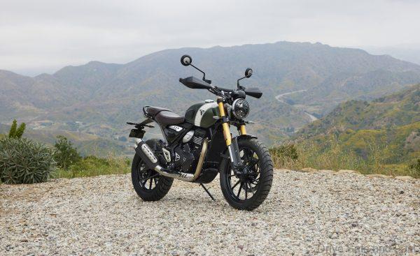 The Scrambler 400 X features a longer wheelbase, longer travel suspension, larger 19″ front wheel and wider handlebars along with a larger cast steel brake pedal, high-grip, low-mounted foot pegs as well as a larger 320mm front brake disc with an optimised brake pad compound. This bike comes headlight, radiator and sump protection, handguards, a handlebar brace with pad as well as a longer front mudguard. There are three colour schemes, each with the Triumph ‘Scrambler’ tank stripe and triangle badge – Matt Khaki Green/Fusion White, Carnival Red/Phantom Black, Silver Ice.