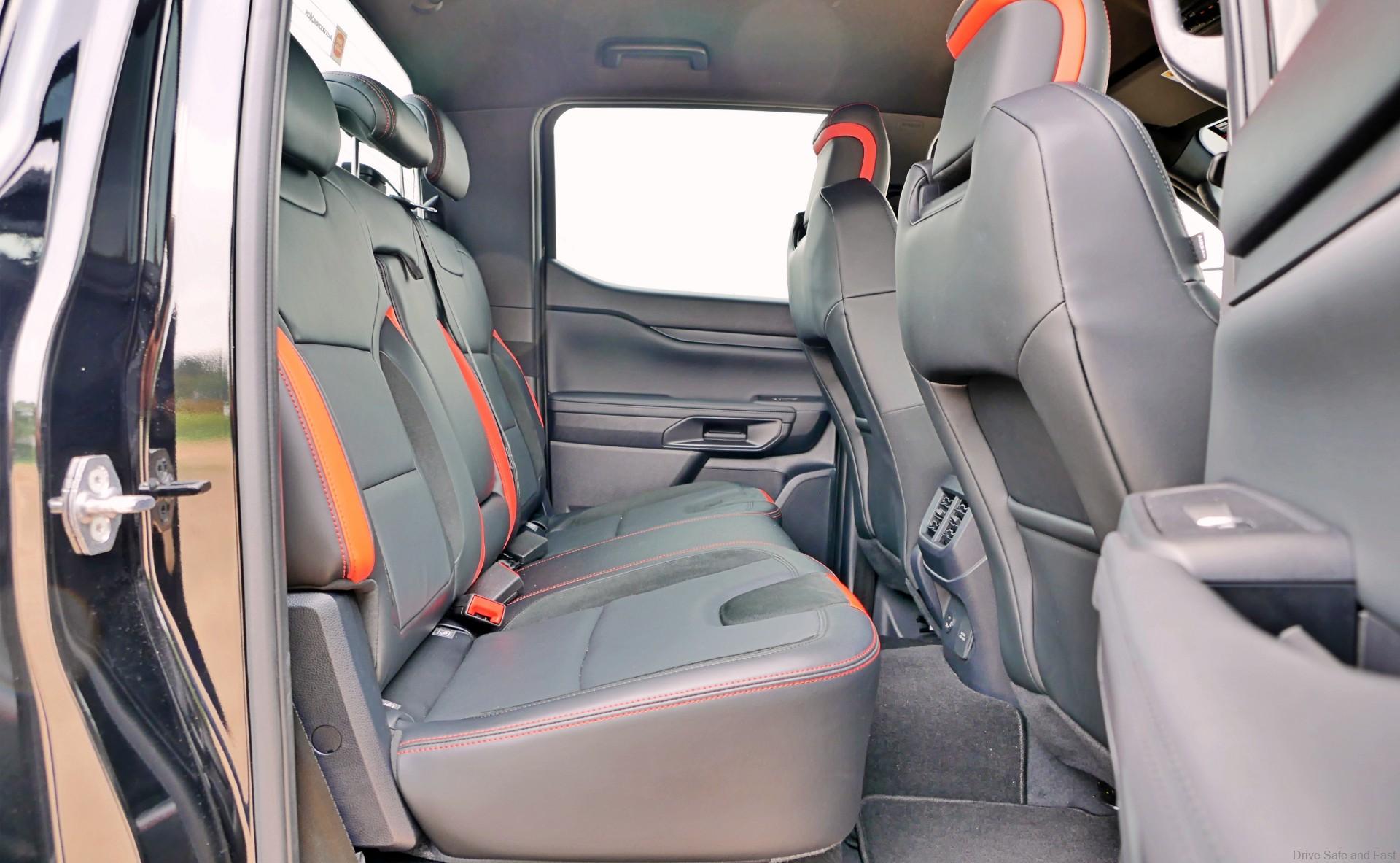 Inside, you’ll only be disappointed if orange is your least favourite colour. Ford has decided to ditch the subtle blue contrast colour of the last Ranger Raptor and have gone all-in on orange. It leads to a very ‘youthful’ and ‘athletic’ design for the cabin that may not speak to many.