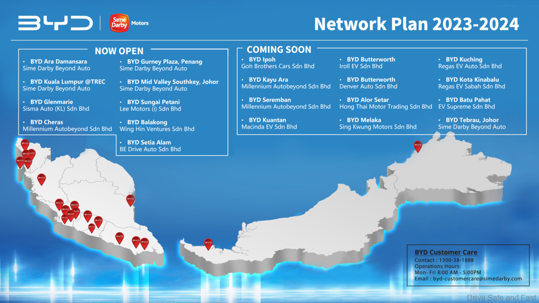 The BYD dealership network in Malaysia is now 21 strong with the latest appointments by Sime Darby Motors.