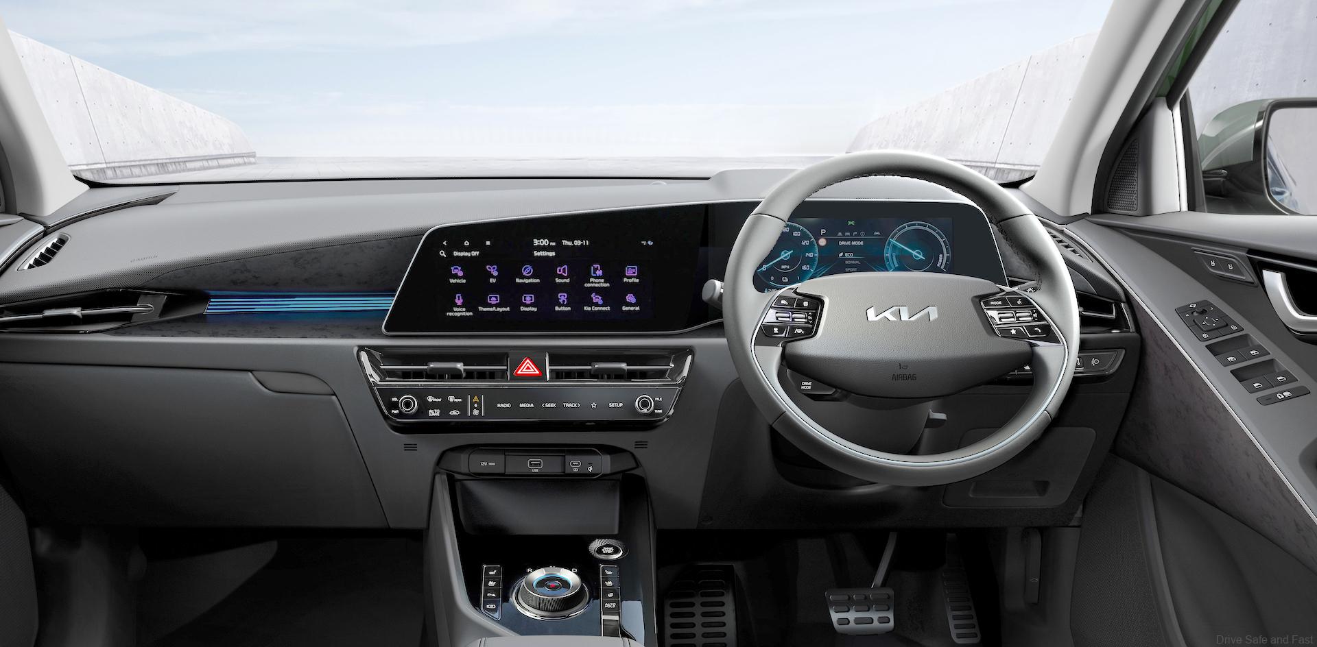 The standard safety features of the Kia Niro EV include 8 SRS airbags (front driver & passengers, front side, side, curtain and driver’s knee), Anti-Lock Braking System (ABS), Electronic Brake-Force Distribution (EBD), Safe Exit Assist (SEA) system which automatically provides a warning if a vehicle is approaching from the rear side is detected within the blind-spot. Hill-start Assist Control (HAC), Traction Control System (TCS), ISOFIX child restraint anchor points and Rear Occupant Alert (ROA) come as standard.