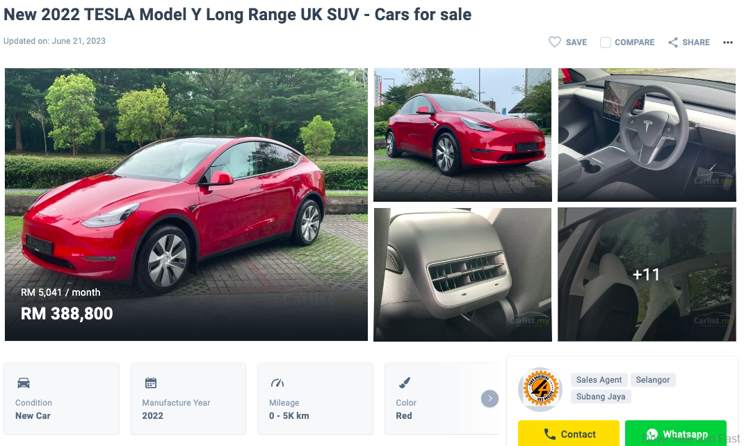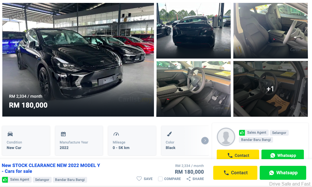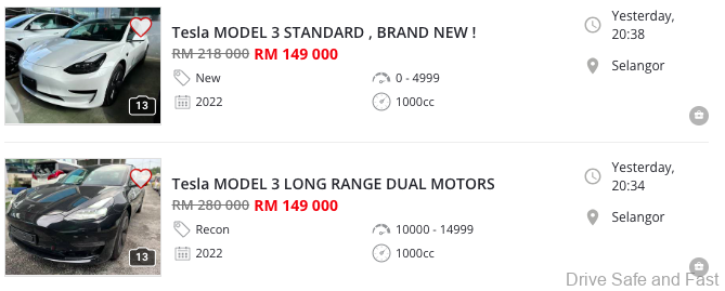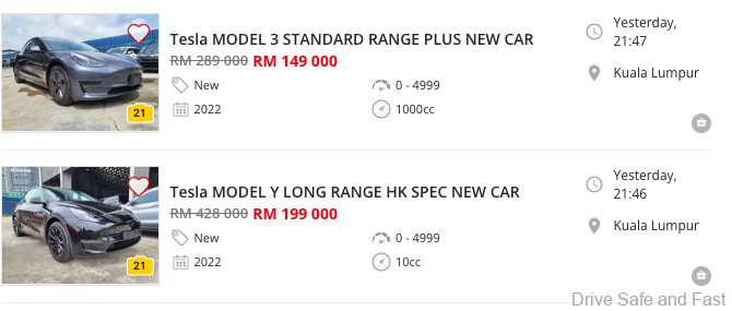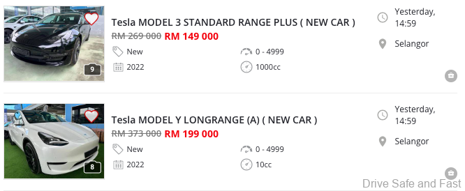 Model Y new car price has caused the severe mark down of old AP imported Tesla EV’s in Malaysia