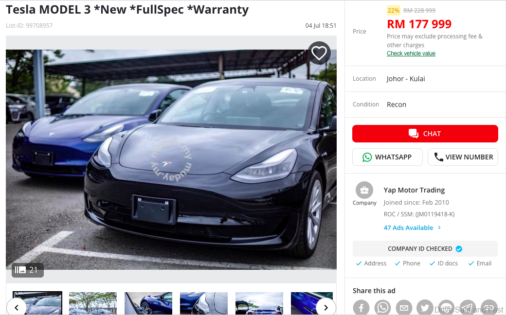 So, if you currently already own a Tesla (2 to 3 years old) bought from a PEKEMA showroom and plan to sell your Tesla, you might only get anywhere between RM85k to RM95k and it is best that you keep your Tesla and not sell it.