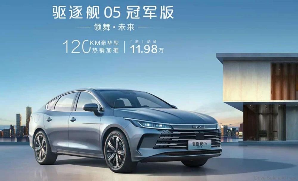 This new sedan is none other than the newest BYD Destroyer 05 Champion Edition, which was launched in China on 9 August 2023 and priced at 119,800 yuan (USD16,700). The Destroyer 05 was the first model of BYD’s Warship Series, a lineup of EVs and plug-in hybrid electric vehicles (PHEVs) aimed at a younger audience.