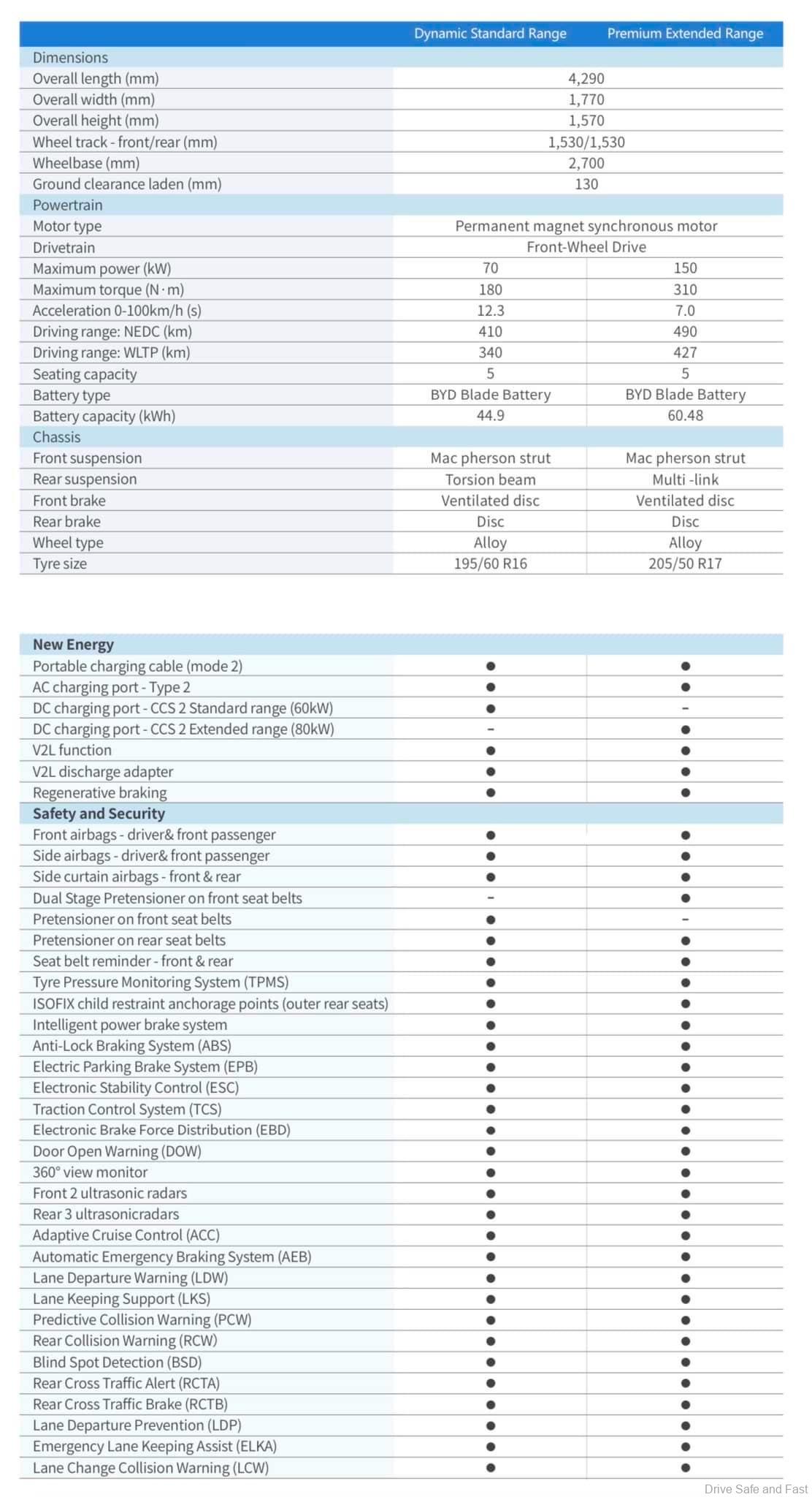 Measuring 4,290 mm long and 1,770 mm wide (with wing mirrors unfolded), the BYD DOLPHIN features a 2,700 mm wheelbase optimised for space and comfort. The vehicle height is 1,570 mm.