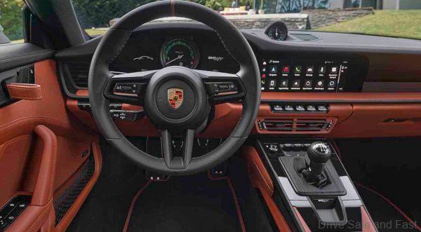 Aerodynamics of the 911 S/T are tuned for public roads. A Gurney flapis standard on the extending rear spoiler. You also get 20″ front and 21″ rear rims wrapped in staggered ultra high-performance tyres. CFRP bucket seats are standard with four-way adjustable Sports Seat Plus available for free.