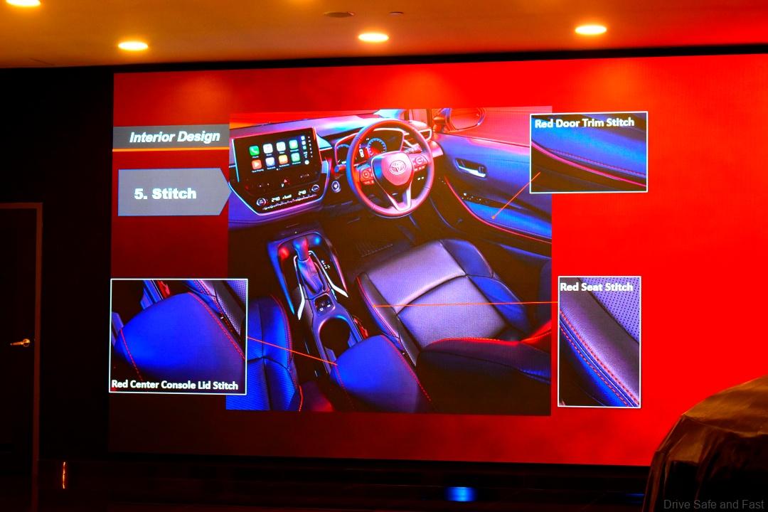 The front seats have a revised design for improved comfort and the sport seats in the new Toyota Corolla GR Sport also sport red accents all over but in a tasteful and subtle way while the whole car also features a slew of “GR” emblems all over including on the floor mats.