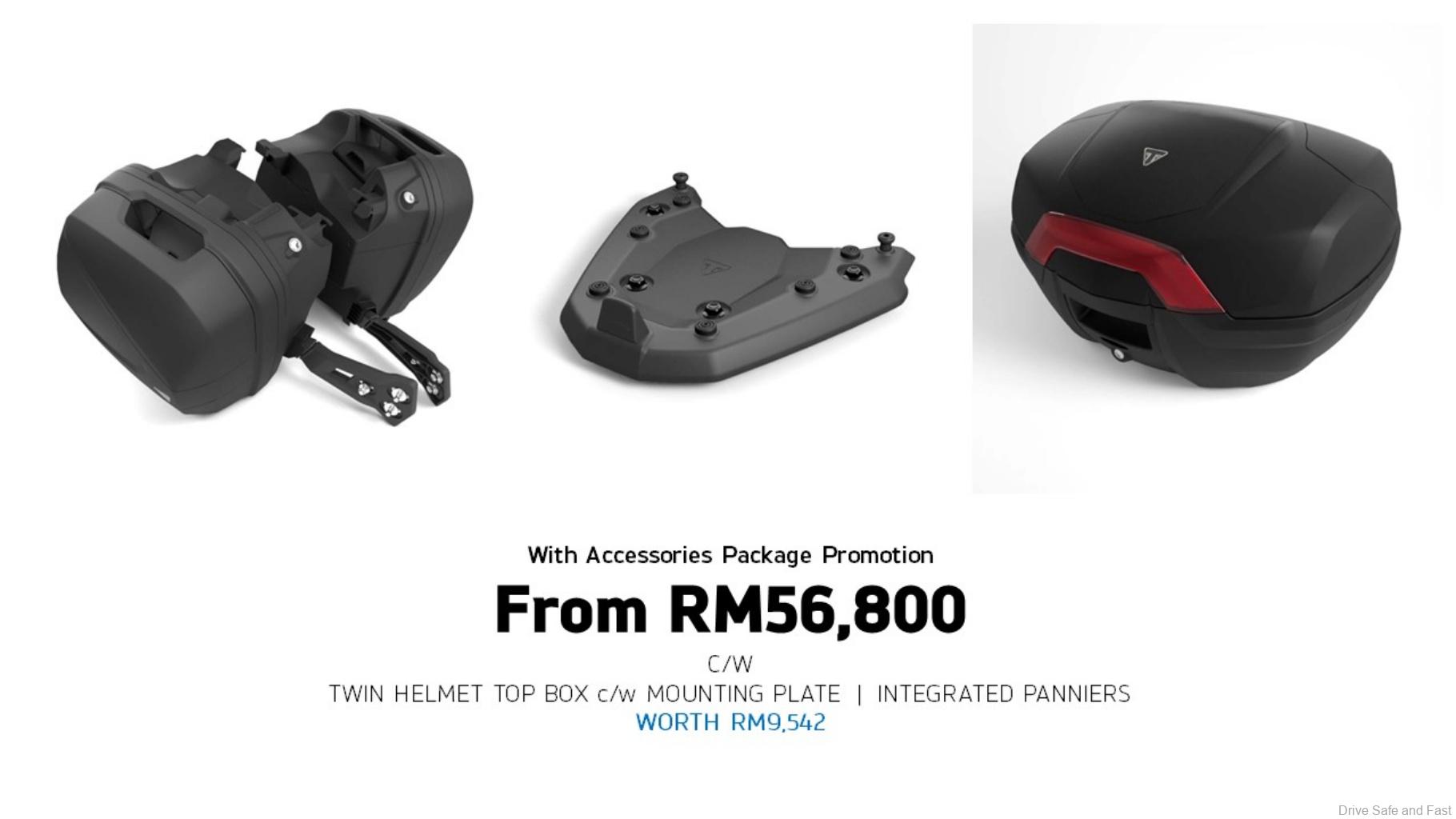 The Triumph Tiger Sport 660 also offers the lowest service workshop cost in its category As well as class-leading 10,000 miles (16,000 km) or 12 months service interval and a highly competitive starting price of RM50,900 going up to RM56,800 for the special Merdeka promotion accessories package.