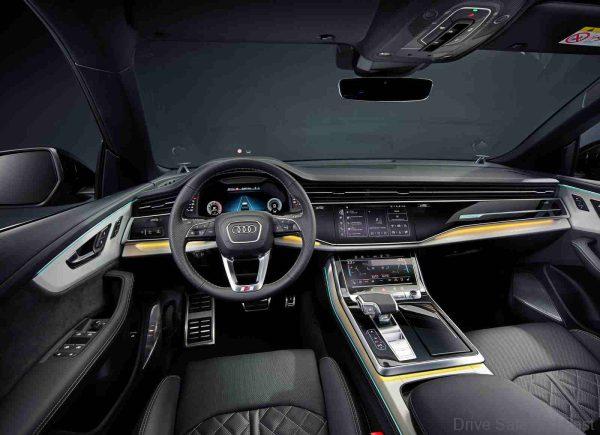 Audi Q8 customers can now choose three new metallic paints, Chili Red, Ascari Blue and Sakhir Gold and there are 5 alloy wheel designs ranging from 21-23 inches across. Inside, there are a variety of inlay and upholstery choices.