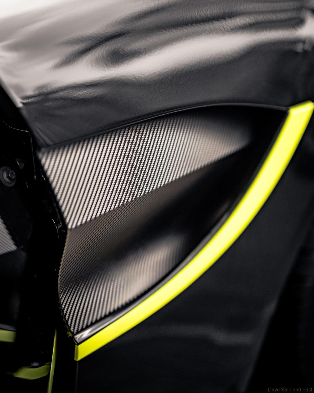 On top of that, the Aston Martin Vantage Midnight Viper comes with a dark glossy black finish with green accents, which also extends to the rear diffuser and also sports additional “outline” style lines flanking either end of the matte black racing stripe running along the middle of the car.