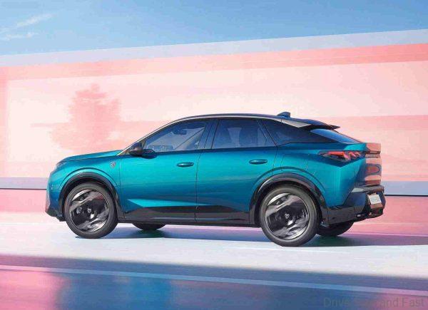 There are six exterior colours, namely Obsession Blue, Ingaro Blue, Okenite White, Pearl Black, Artense Grey, and Titanium Grey. A two-tone gloss black roof is standard on the E-3008 GT. This version also comes with gloss black bumpers, wheel arches, and door sill protectors.