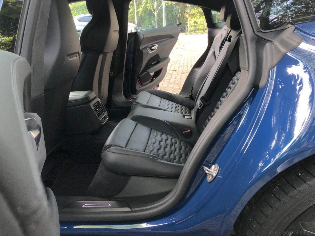 Meanwhile, open the e-tron pillar-less doors and you will be greeted by a true low slung sports car cabin. The RS seats are firm figure hugging and even the rear 2 passengers get comfortable space with ample legroom. The dashboard is shared with petrol powered Audi’s which means it is easy to get used to and ‘work’ if you are current Audi owner.