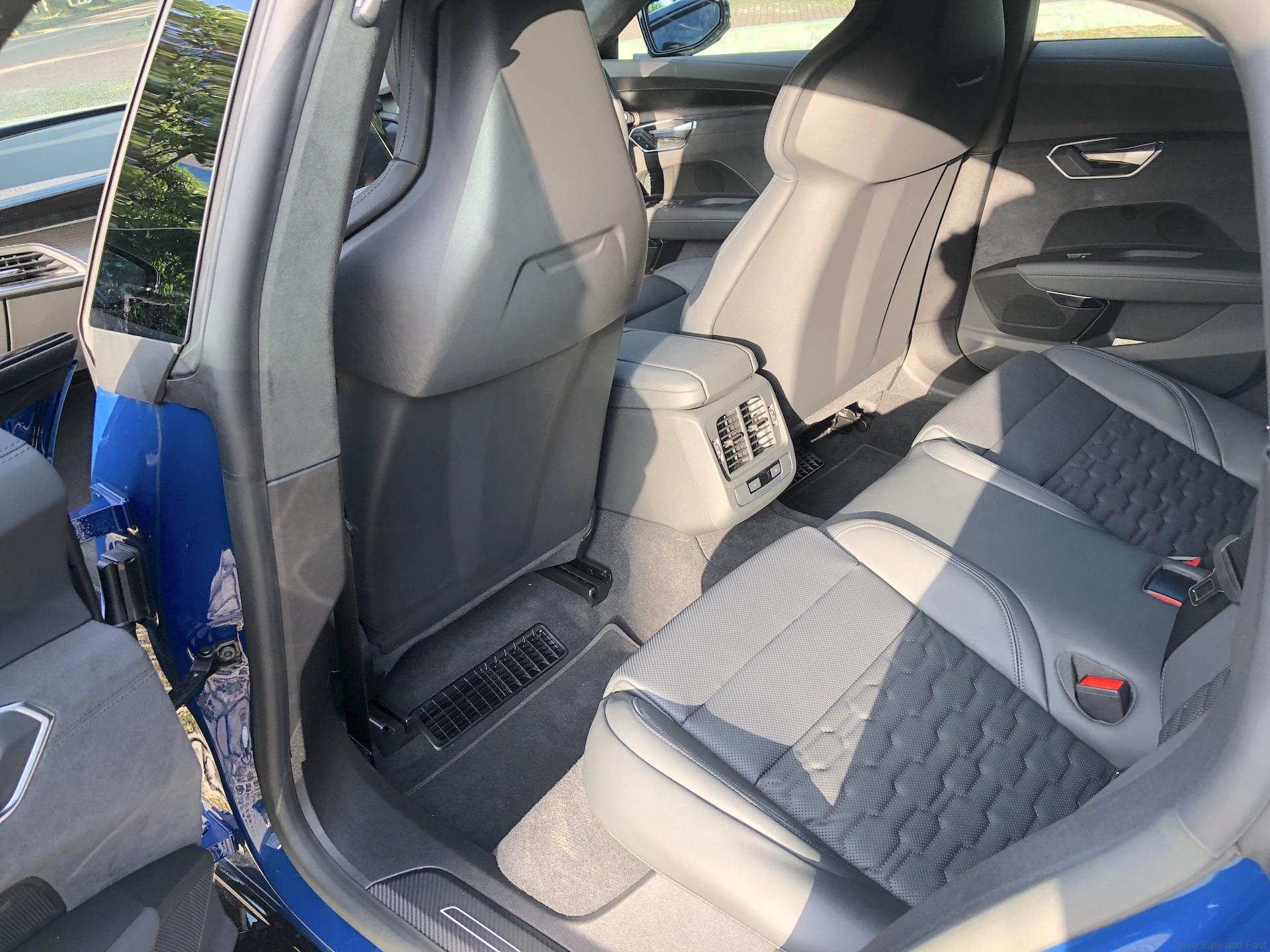Meanwhile, open the e-tron pillar-less doors and you will be greeted by a true low slung sports car cabin. The RS seats are firm figure hugging and even the rear 2 passengers get comfortable space with ample legroom. The dashboard is shared with petrol powered Audi’s which means it is easy to get used to and ‘work’ if you are current Audi owner.