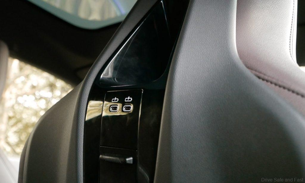 The headrests of the front seats don’t have adjustable metal prongs, so you can’t mount hangers there either. The second drawback was that the rear windows don’t go down all the way. They stop about halfway down, which presented challenges to the video and photography crew who had certain shots in mind that had to be modified or scrapped.