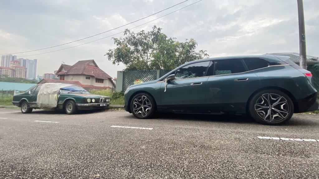 Later that day, I took my parents on a drive with the BMW iX. I gave them a short burst of the 523 hp and 765 Nm of torque dual motor output, which was accompanied by Hans Zimmer’s almost comical IconicSounds soundtrack. I may have aged them a little with this little sprint to 100 km/h, but it was worth it for the thrill. I spotted our old friend, the abandoned first-gen 7 Series, and decided it was worth snapping a photo with the also greenish iX.