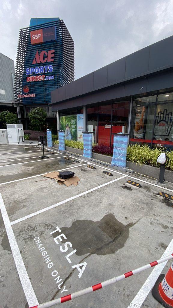 The next day, I set off to Sunway Big Box Retail Park to check out the soon-to-be-opened Tesla Superchargers. These were the first Tesla Superchargers to be deployed in Johor. We weren’t able to assign anyone to head down for the official launch, so I went ahead of the launch for a couple of pictures. It wasn’t open yet, but most of the setup was ready.