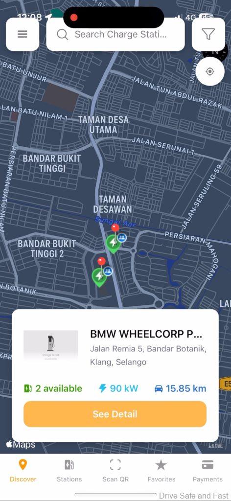 The vehicle’s in-car navigation did not have this Wheelcorp Bandar Botanic showroom listed, but the JomCharge app on my phone showed that there was indeed a 90 kW DC Fast Charger there. So I navigated there, and another friendly guard allowed me to enter and get charging. Note that Wheelcorp in Klang uses JomCharge while Auto Bavaria in JB uses Go-To-U. There’s no unified app for BMW electric customers to have access to DC Fast Charging stations in BMW’s own authorized dealerships it would seem.