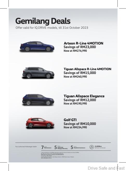 If you’re considering upgrading to a Volkswagen with IQ.DRIVE, now is the perfect time. Take advantage of Gemilang Deals which are available until October 31, 2023.