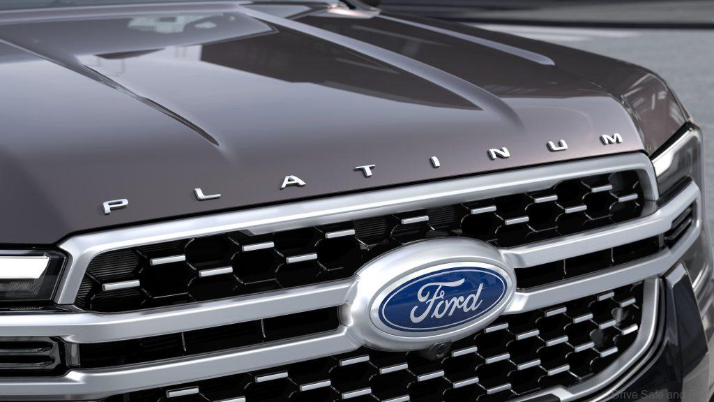 The Ranger Platinum boasts a slew of exterior enhancements that set it apart. These include a distinctive grille, first-in-class 20-inch alloy wheels, Platinum hood badging, Silk Chrome trims, and cutting-edge Matrix LED headlamps, making a bold statement. Additionally, a dampened tailgate ensures ease of use, and the ingenious Flexible Rack System is a game-changer. The vehicle is also available in the new exclusive Equinox Bronze paint color, previously reserved for the Everest model.
