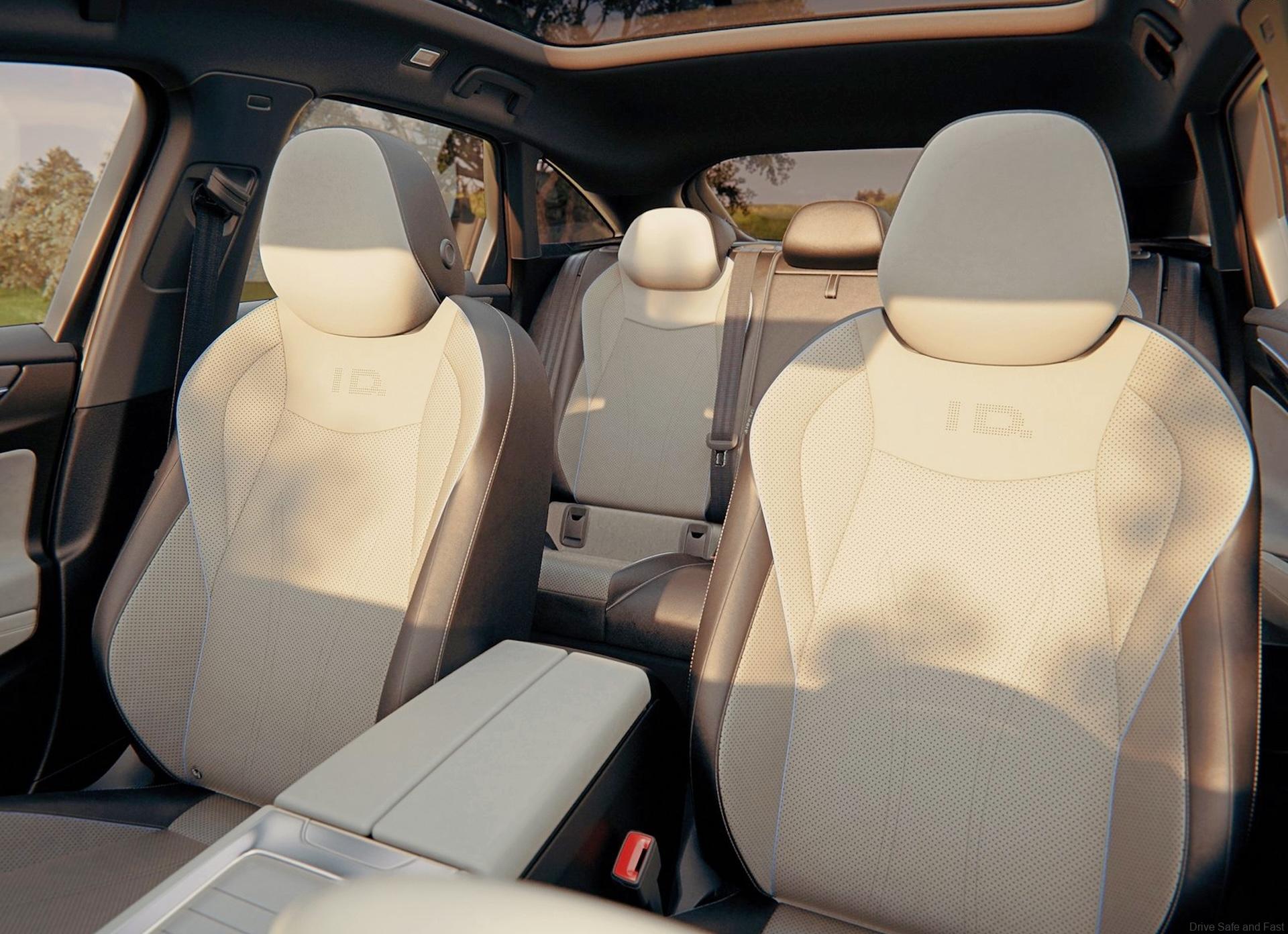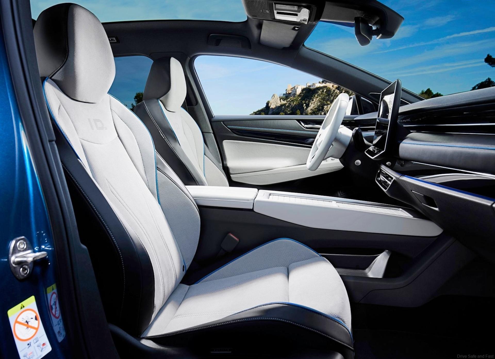 The long wheelbase and short overhangs of the Volkswagen ID.7 allows it to offer a lot of space for occupants in both rows of seats. Volkswagen will equip all models with an augmented reality heads up display and ID. Light function. A 15″ infotainment screen is provided with a new graphic interface. The car also comes with active electronic control of the air vents with motorized horizontal and vertical flaps. Car conditioning begins as soon as you approach the vehicle with the key.
