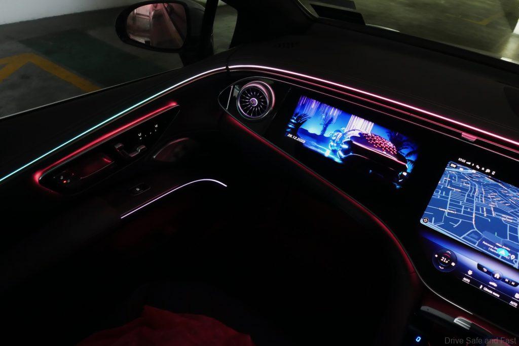 Inside, the story is much the same with lots of light strips and “flowy” design that catches the eye and the imagination. The star of the show is the MBUX Hyperscreen, which really sets the EQS apart from the EQE.
