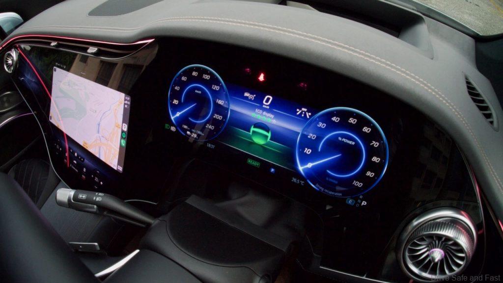 The thing about the cabin that really makes it feel one rung below an S-Class is the size. The front seats are just a little narrower than one might expect but it’s the rear ergonomics that aren’t quite right at least for someone of my size. The rear occupants end up sandwiched between the sloping roof and the thick underfloor battery pack. Again, this feels more like a CLS replacement than an electric S-Class.