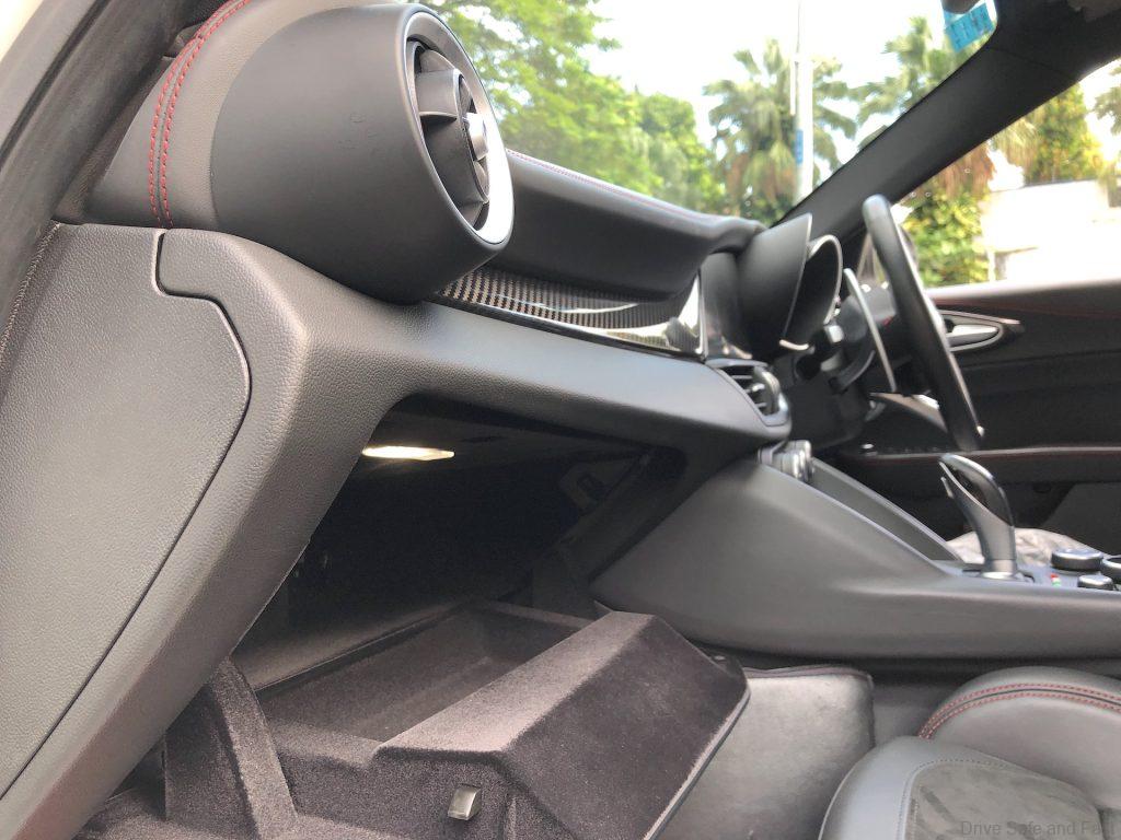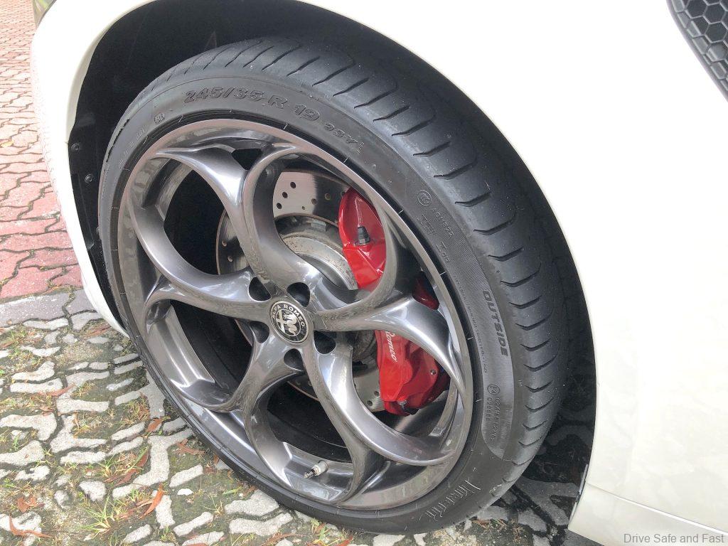 In order to provide great cornering ability corners and downforce behaviour, this Quadrifoglio has an ‘Active Aero Splitter’, which is an front system which actively manages downforce for higher performance and better grip at high speed. We don’t know of any other factory production car that comes with this feature. Some have rear boot-lid active spoiler, but a front active splitter?