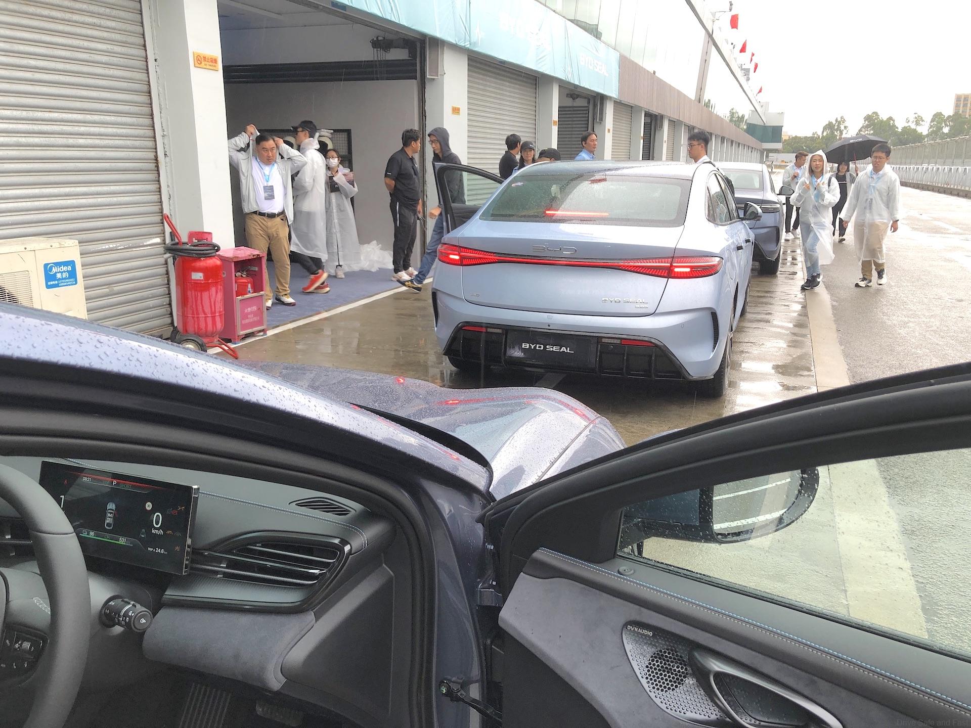 The all-wheel drive SEAL features an 8-in-1 and a 3-in-1 electric drivetrain that sends 160 kW to the front wheels and 230 kW to the back wheels for a maximum combined motor power output of 390 kW (530 PS).