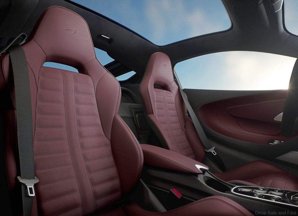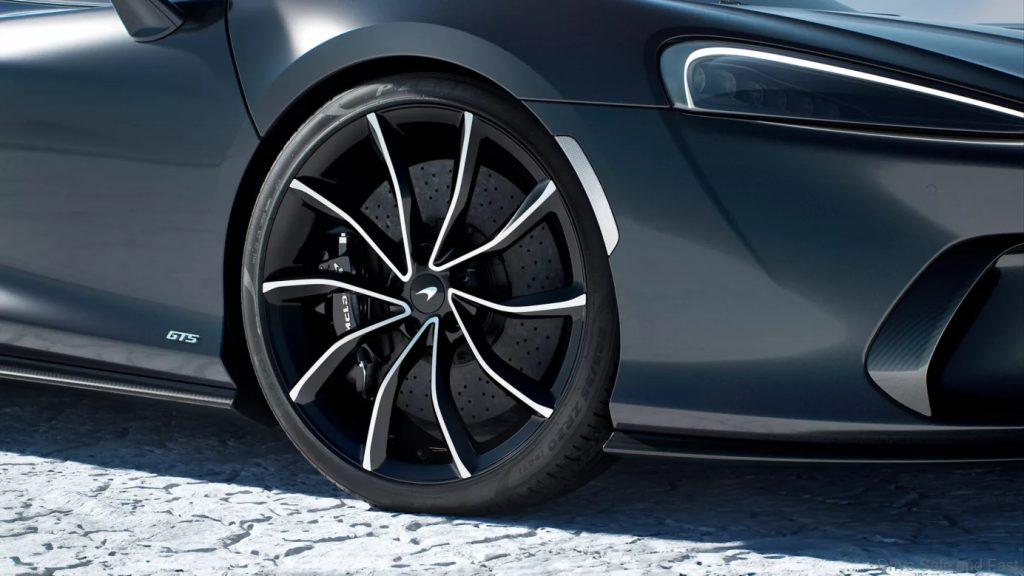 The McLaren GTS comes with gloss black exhaust finishers, mirror caps and window surrounds. There’s also new GTS badging that can be tinted black with a Stealth Badge Pack. There are lots of exterior and interior finishing options too. The cabin is full of machine polished and knurled aluminium switches and gloss black trim as standard. Optionally, a visual carbon fibre pack includes a satin carbon finish and McLaren branded sill finishers.