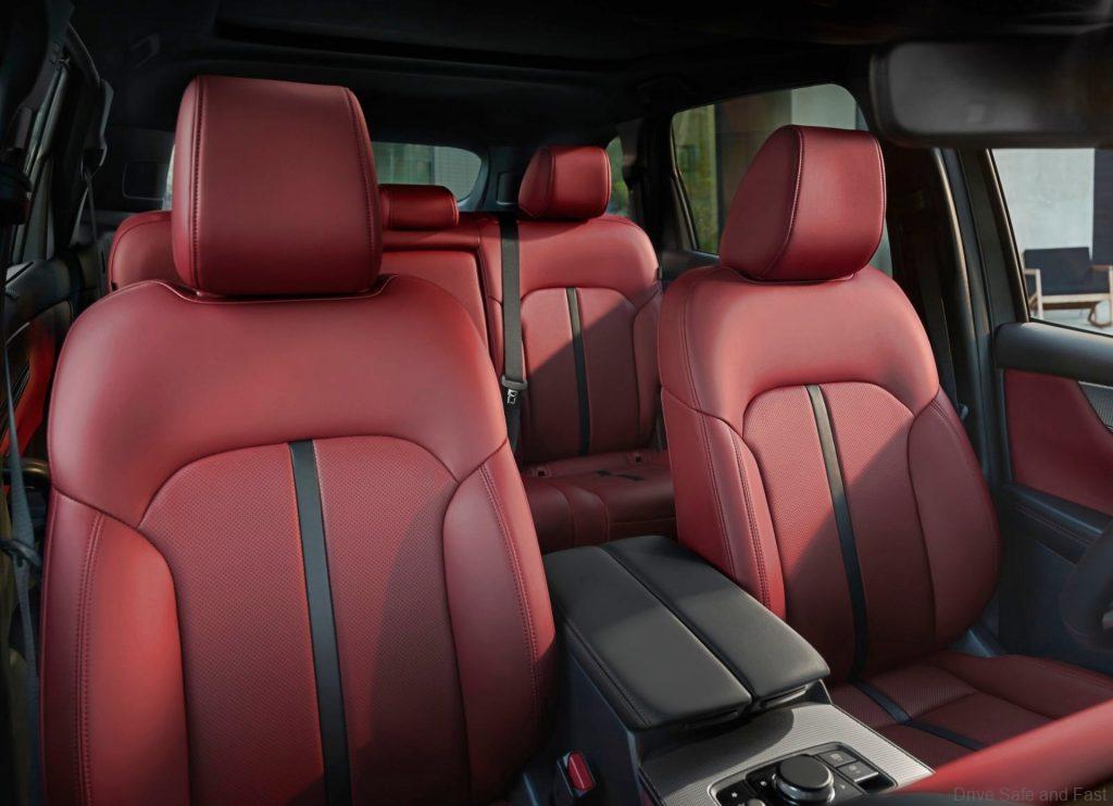 The Mazda CX-70 can be ordered with red Nappa leather which also comes with red contrast stitching on the rest of the cabin. There are loads of options for the interior including gray metallic inlays.