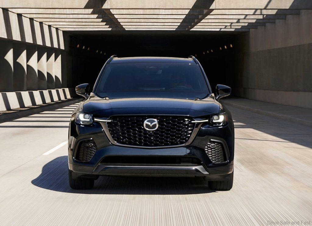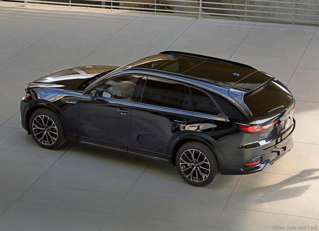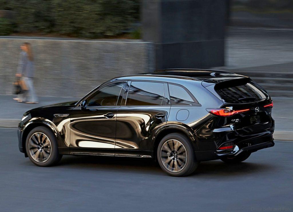 The CX-70 features black accents instead of chrome, leading to a more sporty look than the larger CX-90.