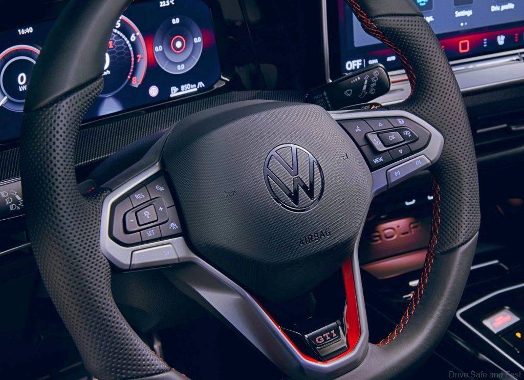 All Golf family vehicles will come with a new generation infotainment system as well as new illuminated controls for the auto climate control. This new MIB4 system features a screen divided into two touch bars. Volkswagen says the top bar is configurable while the bottom bar remains static with A/C controls and the home button no matter what happens with the large main screen area in the middle. The display is either a 10.4″ model or a 12.9″ model depending on spec.