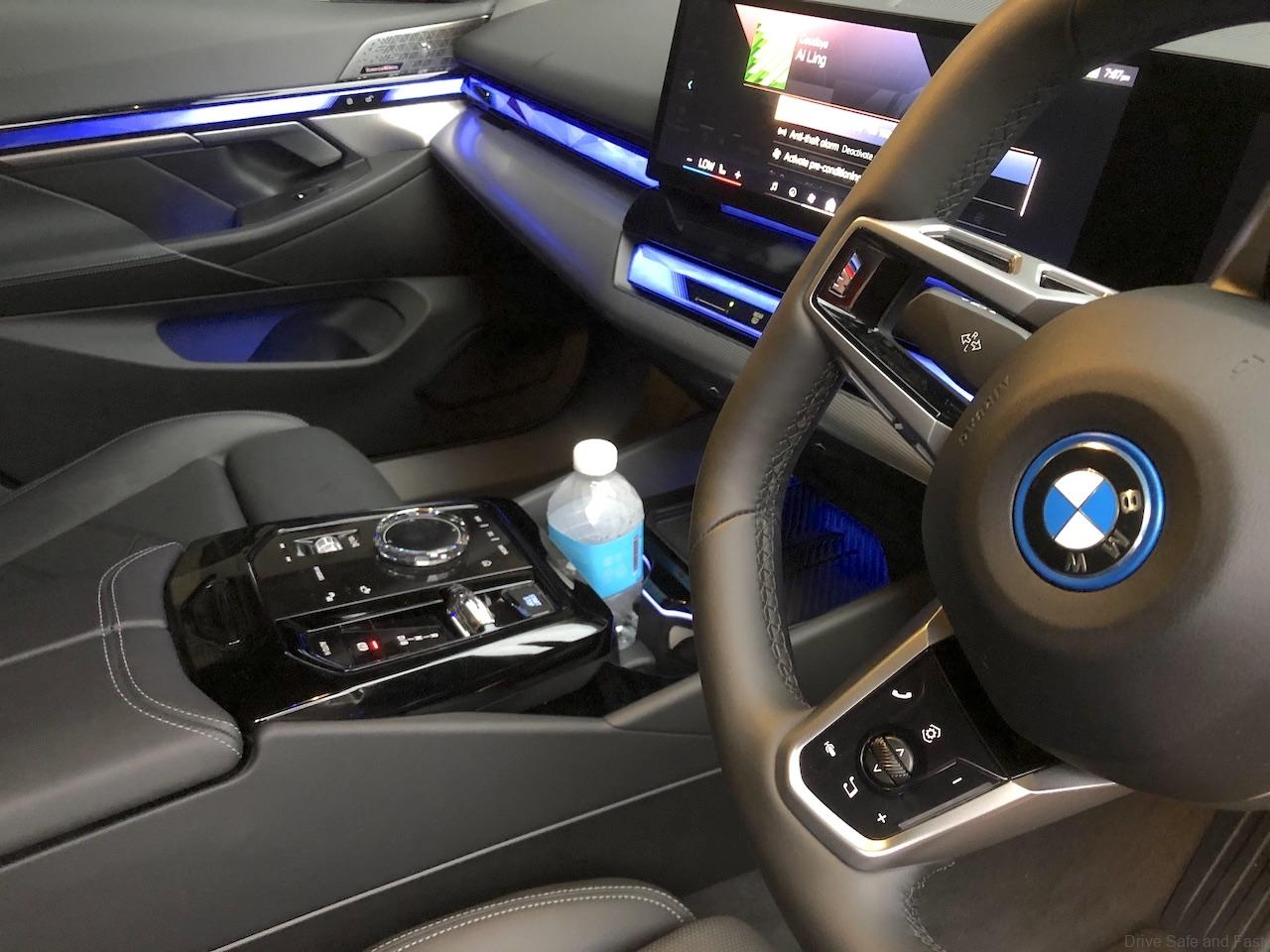 Ignite the ‘motor’ and only a silent murmur can be heard. Click the crystal gear-knob into drive and the i5 glides along with only the 21-inch wide rubbers sending a mild signal to the cabin. Yes, with the windows down you just hear the wide tyres crunching the fallen driveway leaves as you make your way.