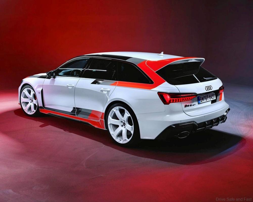“For the RS6 Avant GT2, customers have the option to choose exclusive decals in two colors. The first, in conjunction with an Arkona White finish, combines the traditional colors of Audi Sport, black, gray, and red. The model badges at the front and rear also come in these colors.” Audi stated in a press release.