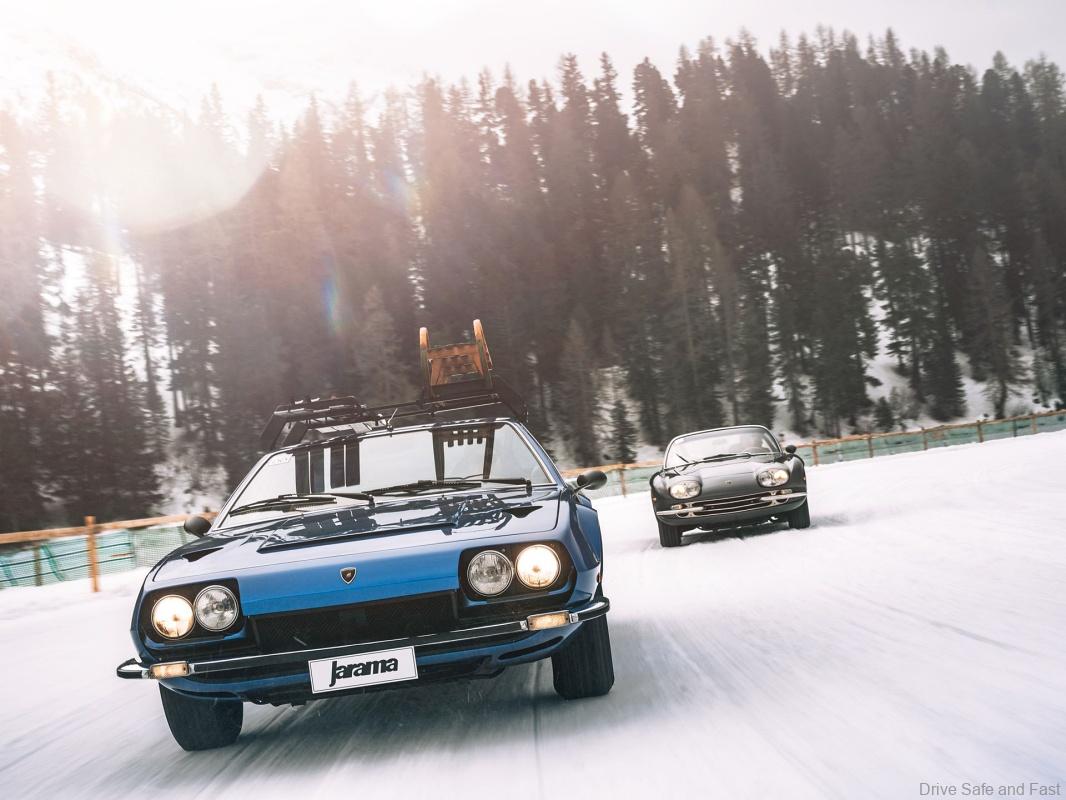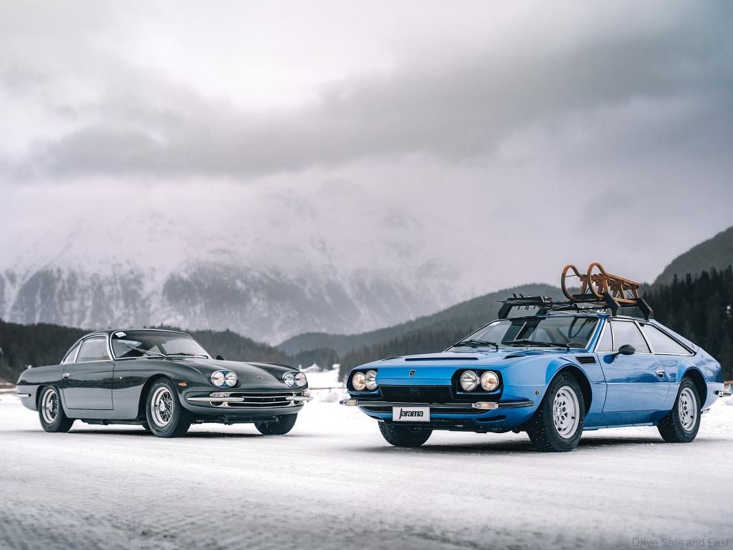 During the event, Automobili Lamborghini showcased two cars from its Sant’Agata Bolognese museum collection, namely a 1973 Jarama GTS, ready for a weekend in the snow complete with ski rack, skis and toboggan, and a 1968 400 GT 2+2, both important cars in the company’s history.
