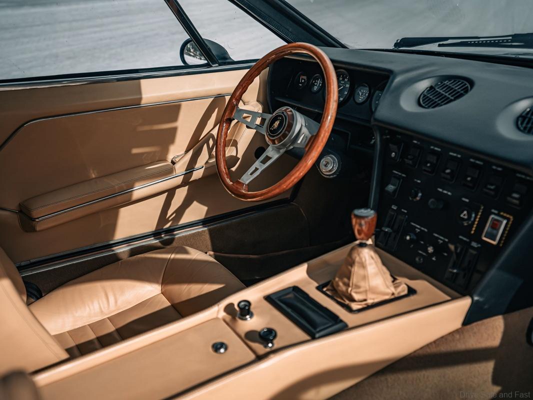 On top of that, a total of 327 units were produced, specifically 177 GTs and 150 GTSs. The 1973 GTS on display in St. Moritz, now owned by Automobili Lamborghini, was sold new in Sicily and is in its original configuration with Blu Tahiti body and mustard-yellow interior.
