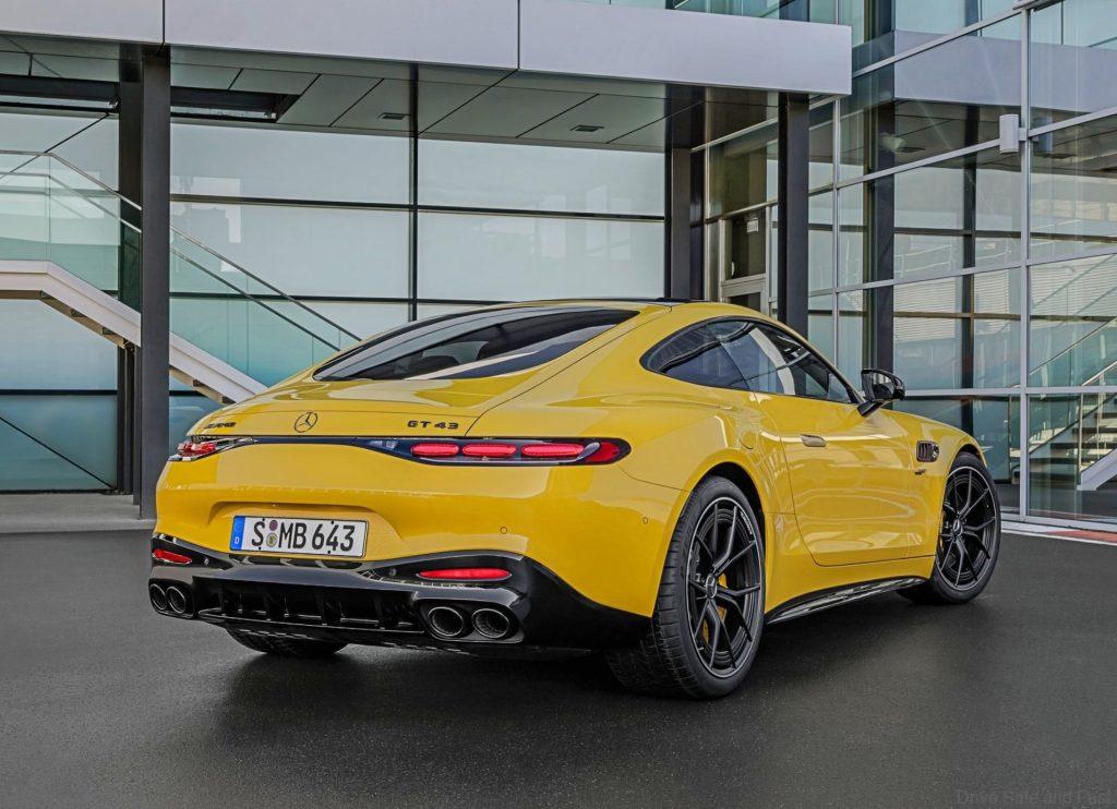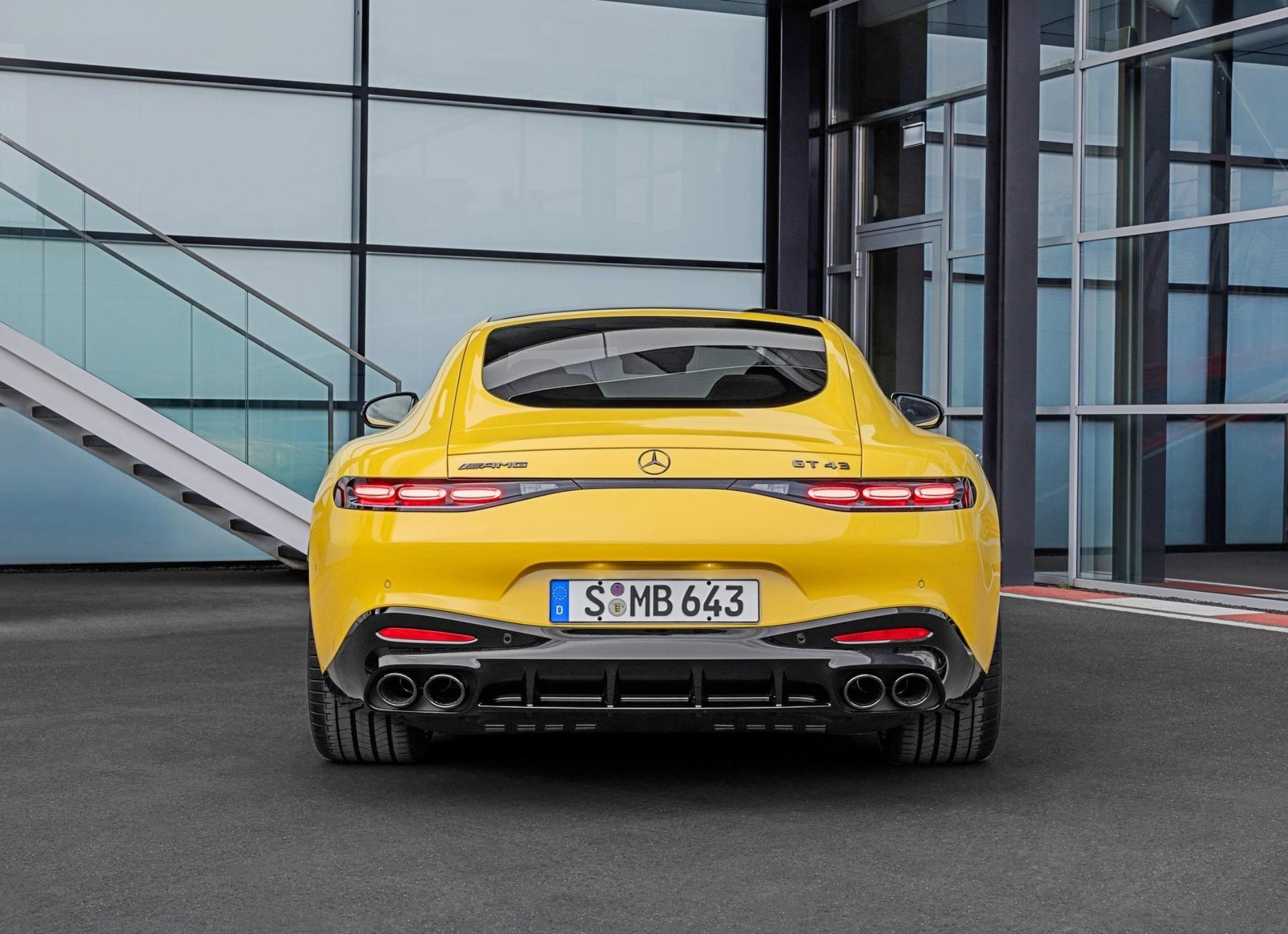 This new Mercedes-AMG GT 43 is powered by the M139 petrol engine, the most powerful four cylinder in production. It also powers other Mercedes-AMG products like the A45. Besides that you’ll also find it as an option for the Lotus Emira. In the AMG GT, it is tuned to generate 421 horsepower and 500 Nm of torque thanks to a combination of an electric exhaust gas turbocharger and a mild hybrid system with a starter generator that can boost power by 14 hp temporarily.