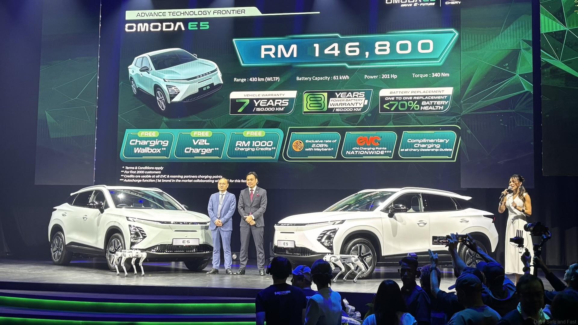 The Chery Omoda E5 is being introduced with an excellent package. The first 2,000 buyers will get a free charging wallbox, a Vehicle-to-Load charger, and RM1,000 free charging credits with EVC. All Chery Omoda E5 customers can get as low as 2.08% interest rate for financing via Maybank, access to EVC’s new autocharging feature, and complimentary charging at all Chery outlets (there are 40 as of writing).