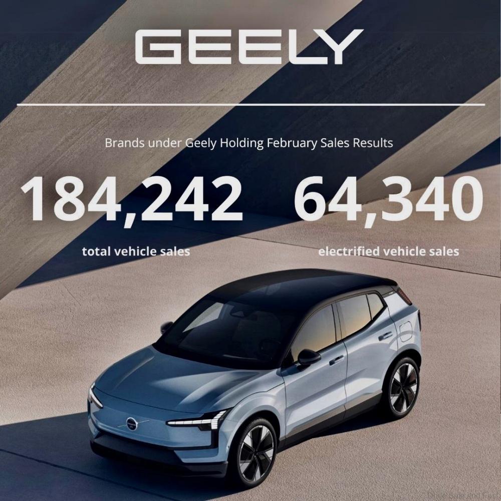 So the Geely February sales results are in and the total sales amounted to 184,242 units, of which 64,340 units were electrified vehicles, this number is indicative of a 5 percent year on year increase and the share of electrified vehicles sold across the portfolio reached 35 percent. Not bad for a single month.