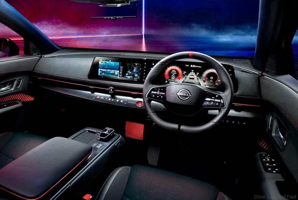 Nismo’s special tuning for each chassis component combined with e-4ORCE electric-drive four-wheel-control technology and dedicated tires mounted on highly rigid 20-inch aluminium wheels on the Nissan Ariya Nismo which generates superior stability and turn-in ability as well as better line-tracing and enhanced cornering ability at high speeds.