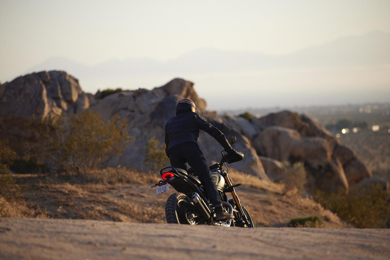 Accentuating the Scrambler 400 X’s all-road attitude are lots of purposeful and practical features, including protection for the headlight, radiator and sump, as well as handguards, a handlebar brace with pad and a longer front mudguard.