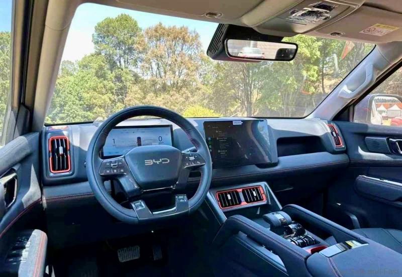 The interior of the BYD Shark is equally appealing as it offers ample legroom and headspace and features premium materials and refined finishes everywhere. The dashboard also features an intuitive touchscreen interface that seamlessly integrates entertainment, navigation, and vehicle settings, putting the power of connectivity all at one’s fingertips.