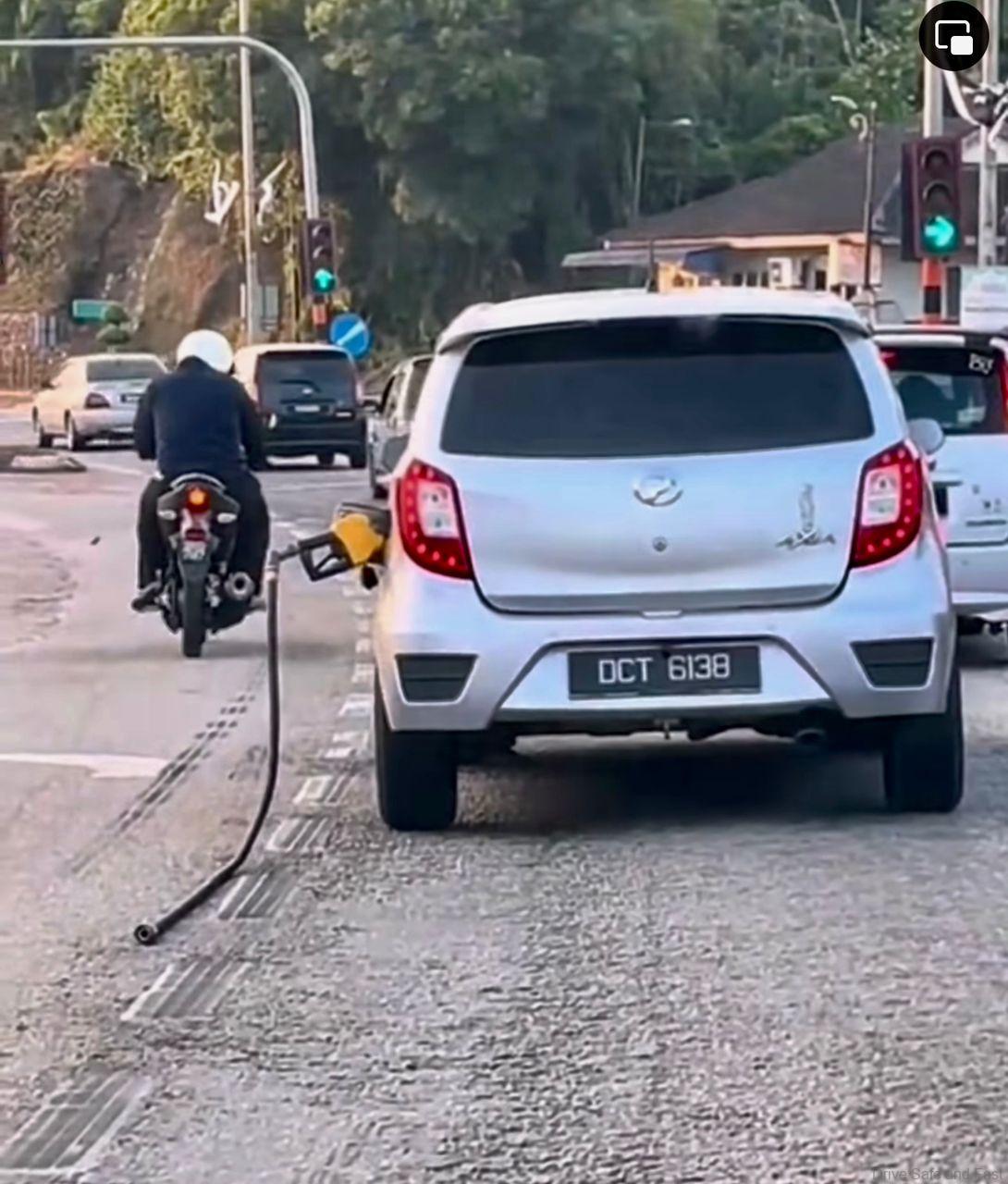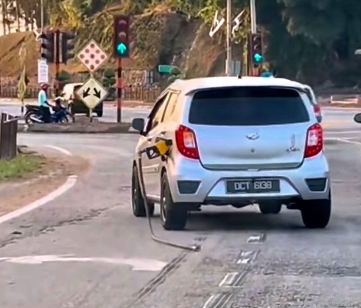 Careless Perodua Axia Owner Drives Away With Petrol Nozzle Still Stuck To His Car
