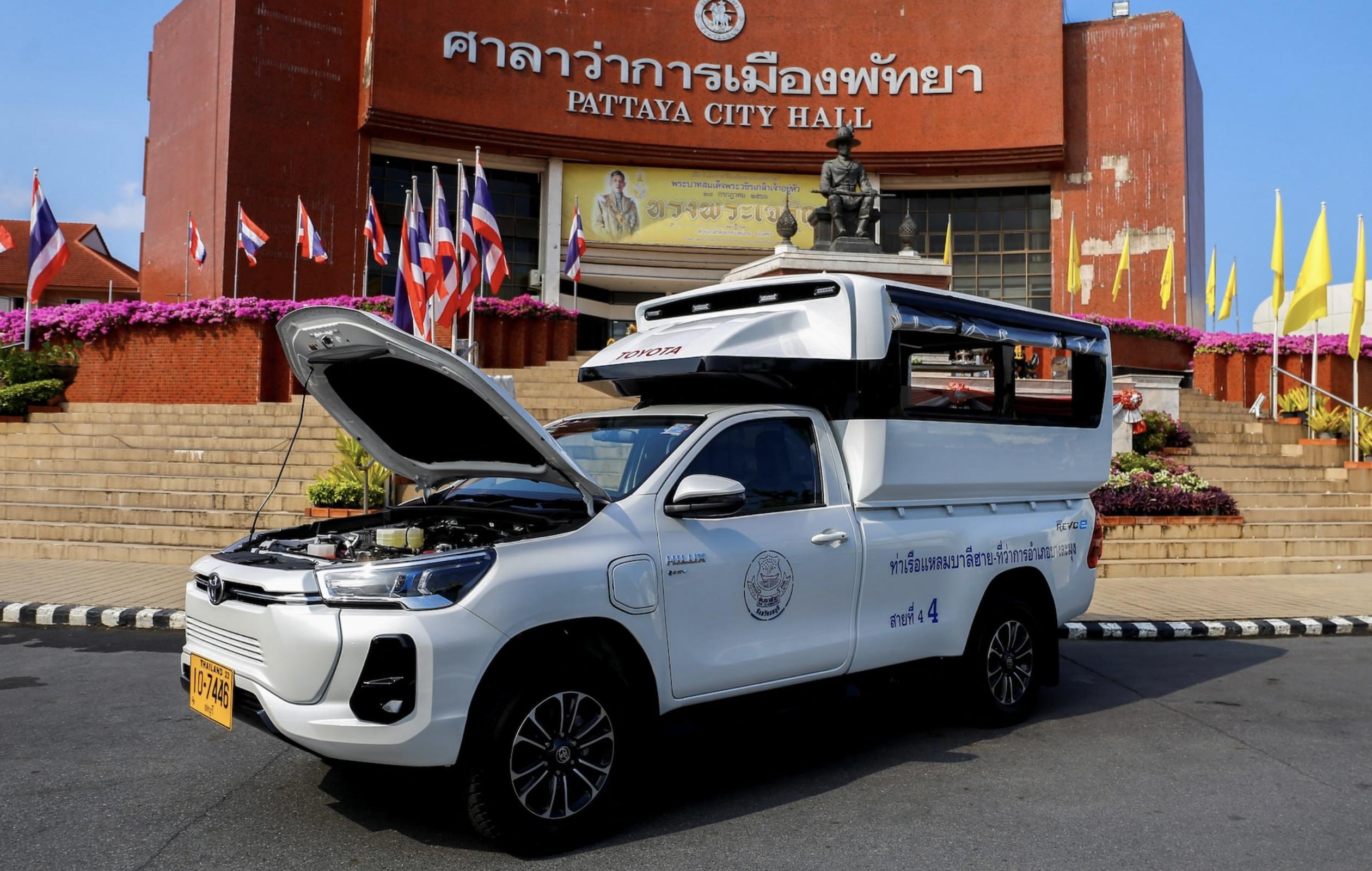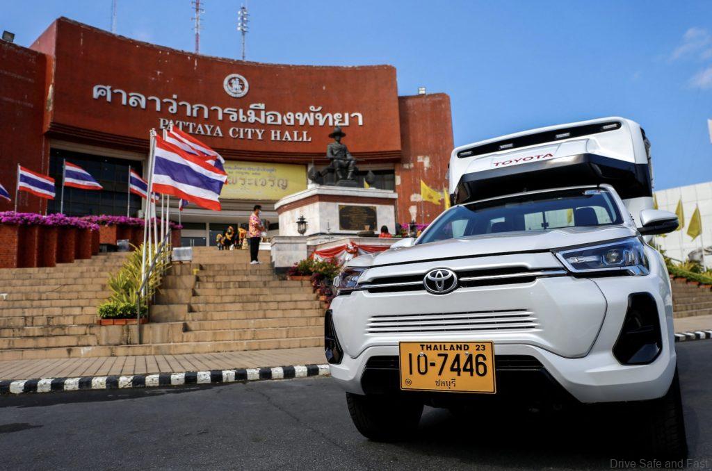 Toyota plans to deliver a total fleet of one dozen electric Hilux Revos to Pattaya for the pilot. The city’s mayor, Poramet Ngampichet, hopes to eventually convert all 700 song-taew vehicles in Pattaya to EVs to reduce emissions in the major tourist destination.