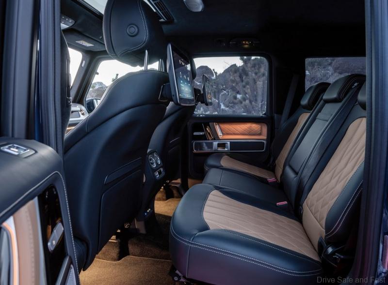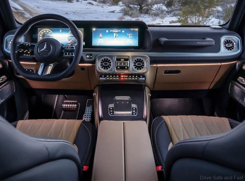 Inside, the new electrified Mercedes G-Class offers a luxurious and functional environment, integrating the MBUX infotainment system for enhanced connectivity. Additional comfort features include temperature-controlled cup holders, a Burmester 3D surround sound system, and advanced safety and assistance systems.
