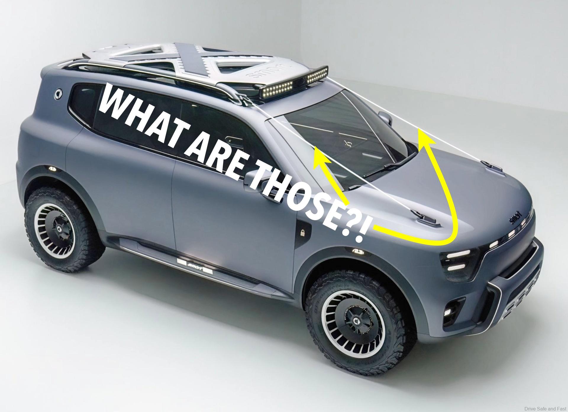 There’s also an animated light bar on the roof, a hidden integrated winch, a folding rear step to get on the roof and some digital screens to indicate tyre pressure and door lock status (though we’re not sure why you’d want to advertise that to anyone but yourself).