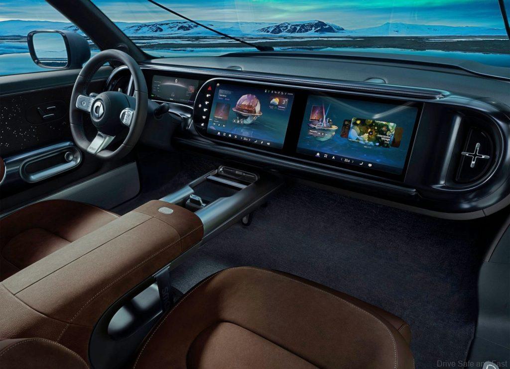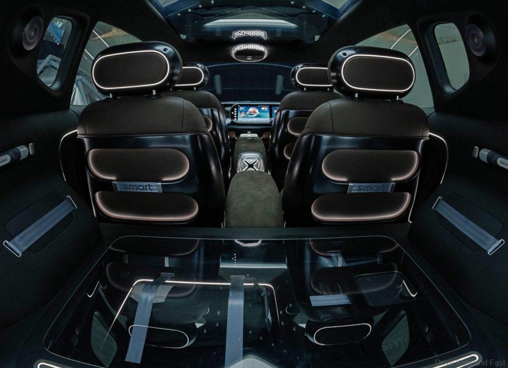 smart are also working on incorporating new driving modes to adapt to different environments. ADAS solutions will also be improved on this new model. A new AMD V2000 chip powers the vehicle’s main functions and twin OLED screens. They’re trying funky things on this concept model including integrating a portable speaker in the centre console and experimenting with a ‘zero-gravity’ front passenger seat which comes with a leg rest.